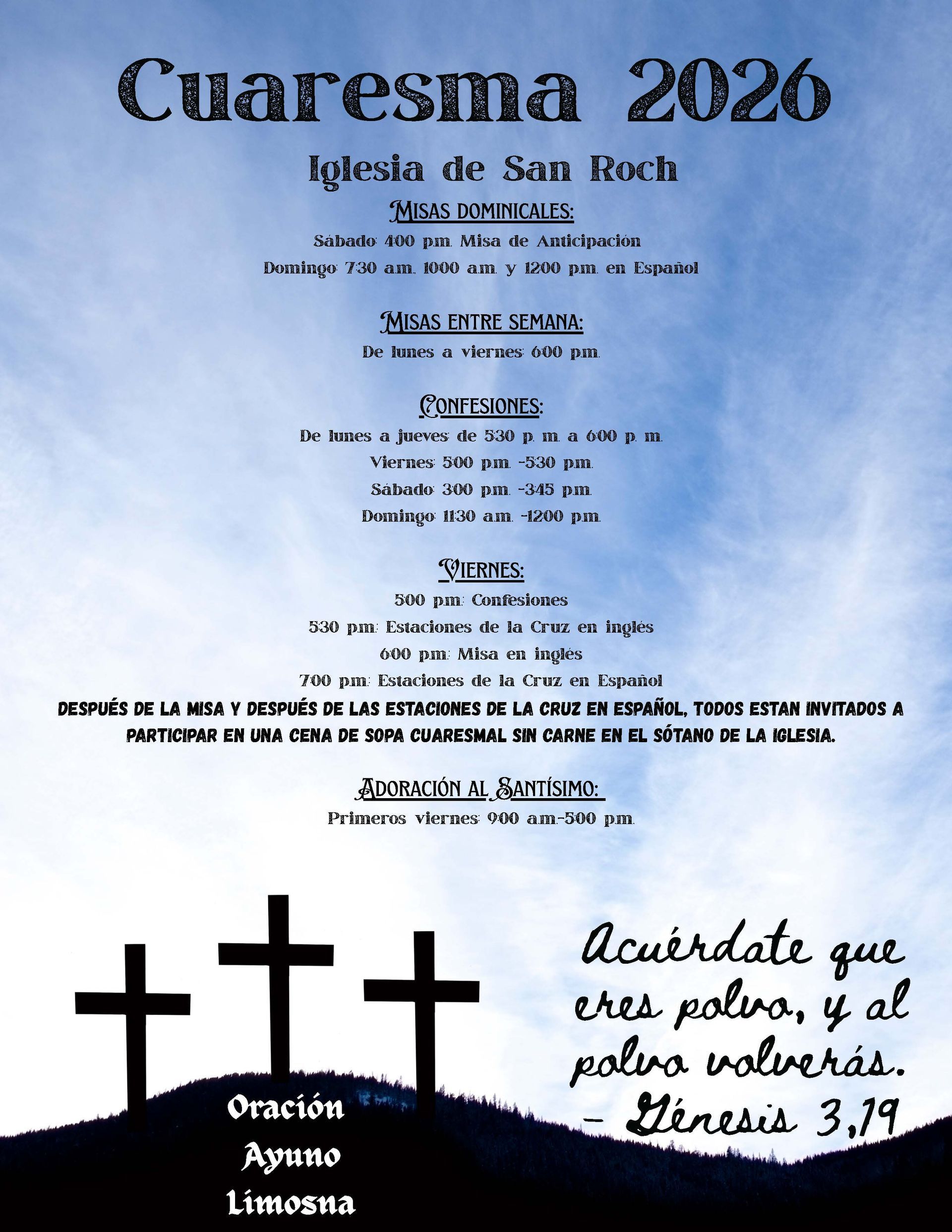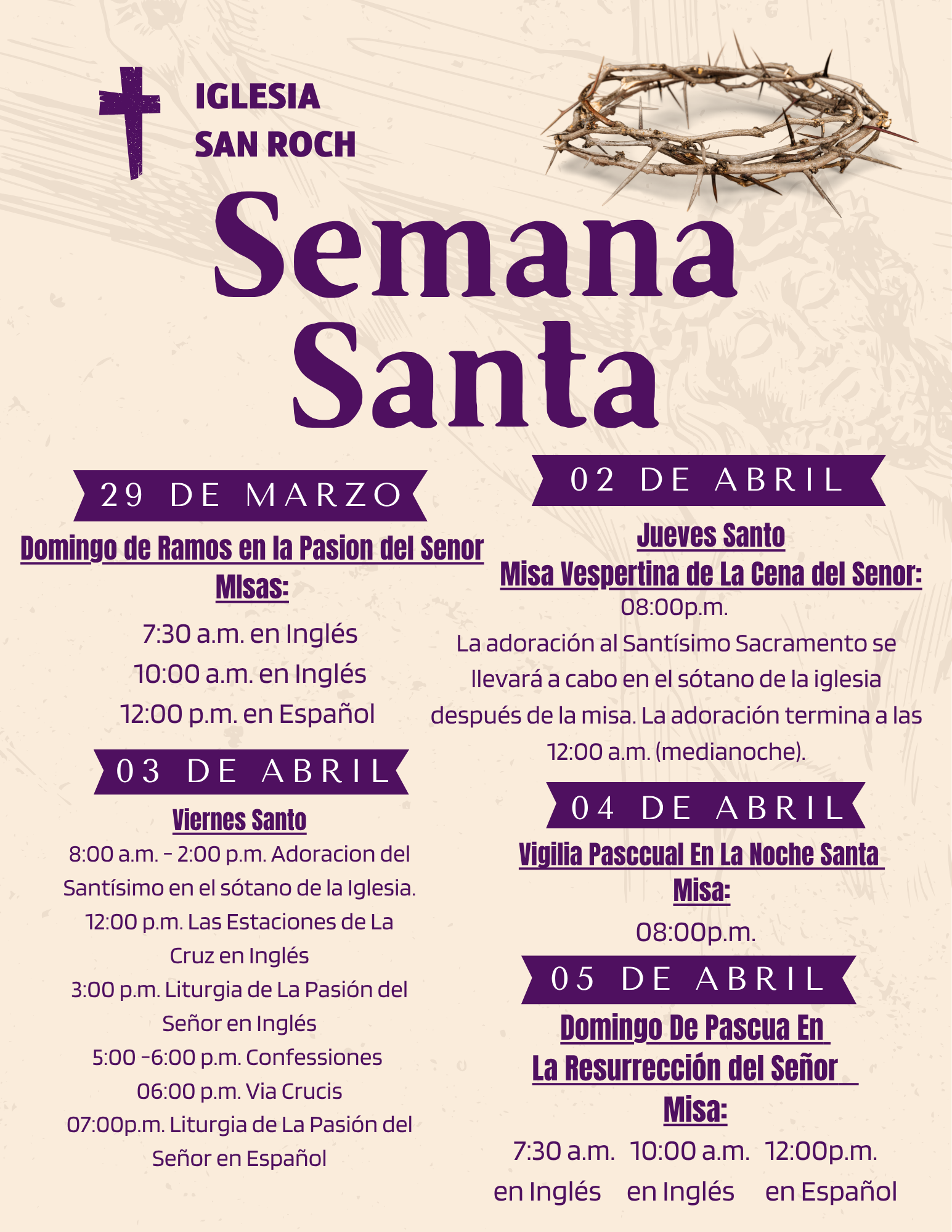 Holy Day 7:00 a.m., 6:00 p.m., and 7:30 p.m. (Spanish)
